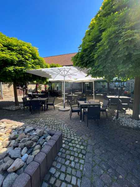 Sobald das Wetter dazu einlädt, lädt auch unser Biergarten zum gemütlichen Verweilen zwischen historischen Mauern und frischem Grün ein.